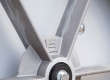 • Quick and accurate setting of the saw cut. The sawhead is adjusted in fixed steps. One rotation of the crank always equals 1 inch. One step compensates for the kerf.
