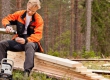 You build in wood a log table, a steady base to attach the guide rail to. Then you roll the log up on the table and work in comfortable height. This is how we prefer to do it!